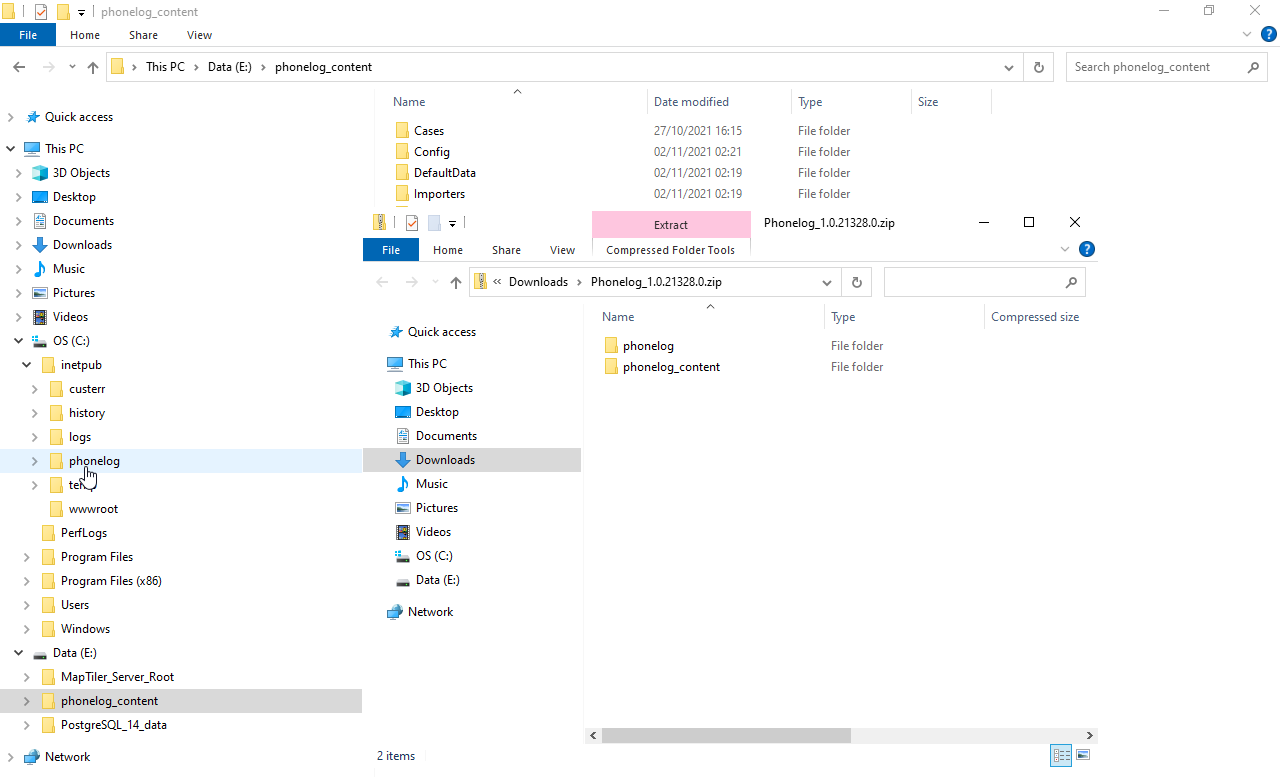 Inside the Archive there are 2 folders: phonelog and phonelog_content.